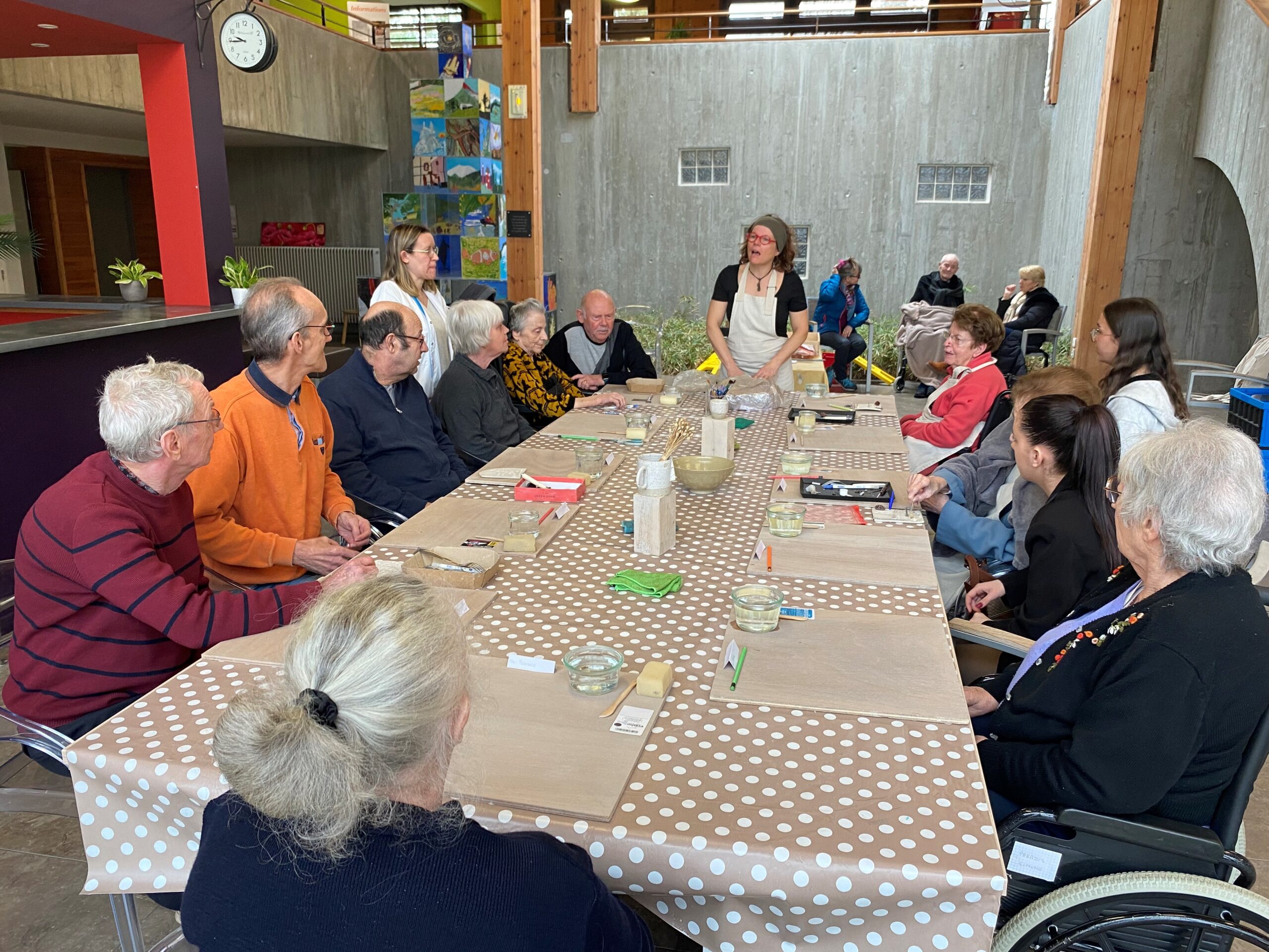 Les participants ont été initiés aux techniques de modelage de l’argile. Béatrice a fourni des conseils avisés sur le façonnage, le lissage et la décoration des pièces, permettant ainsi aux résidents de laisser libre cours à leur imagination et de donner forme à leurs idées.