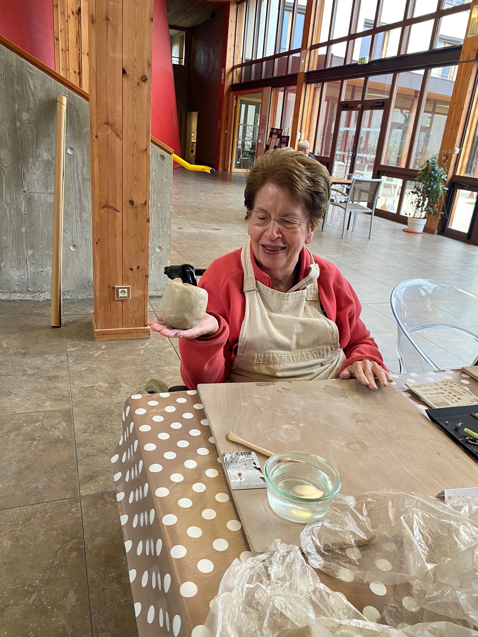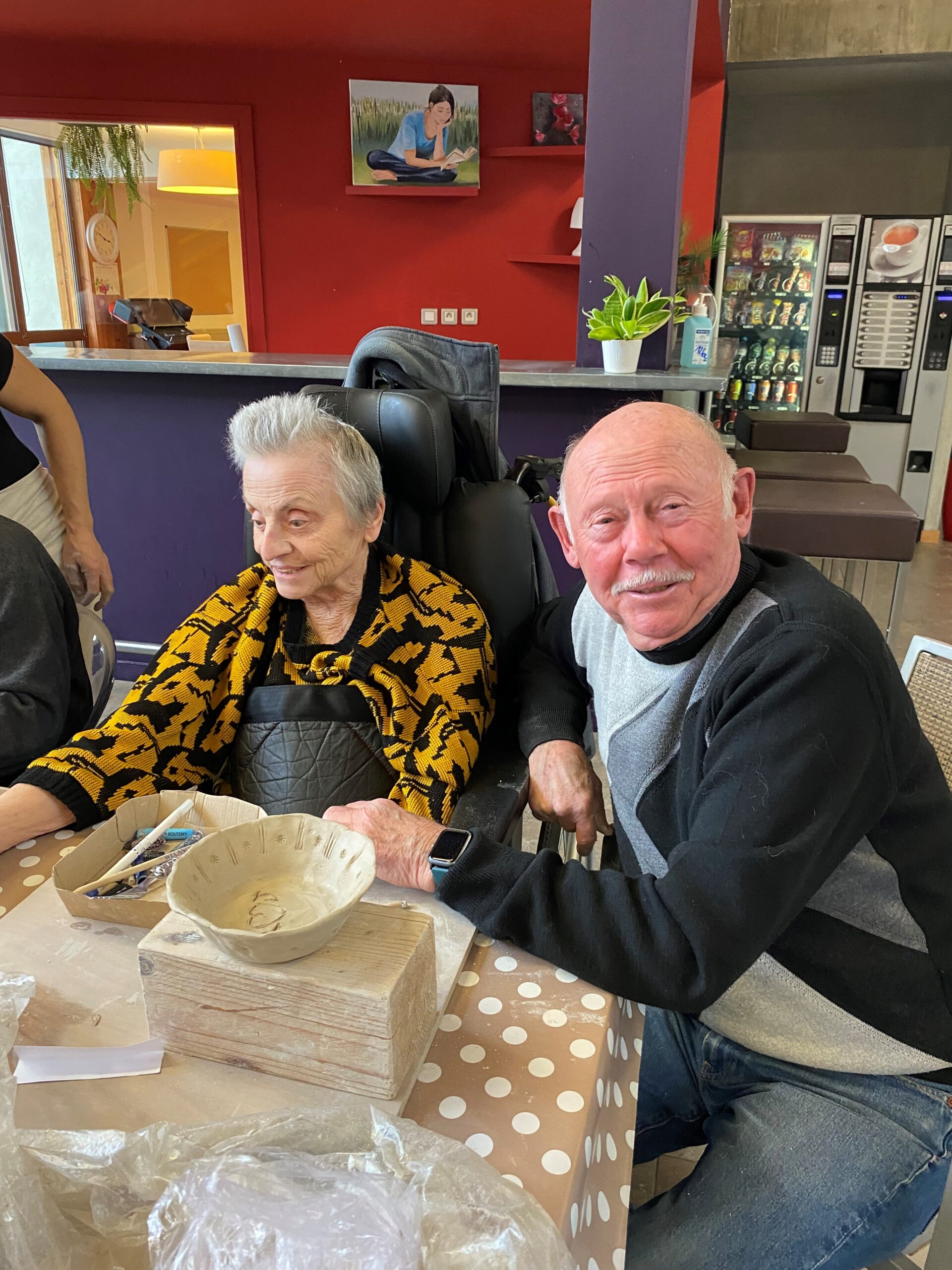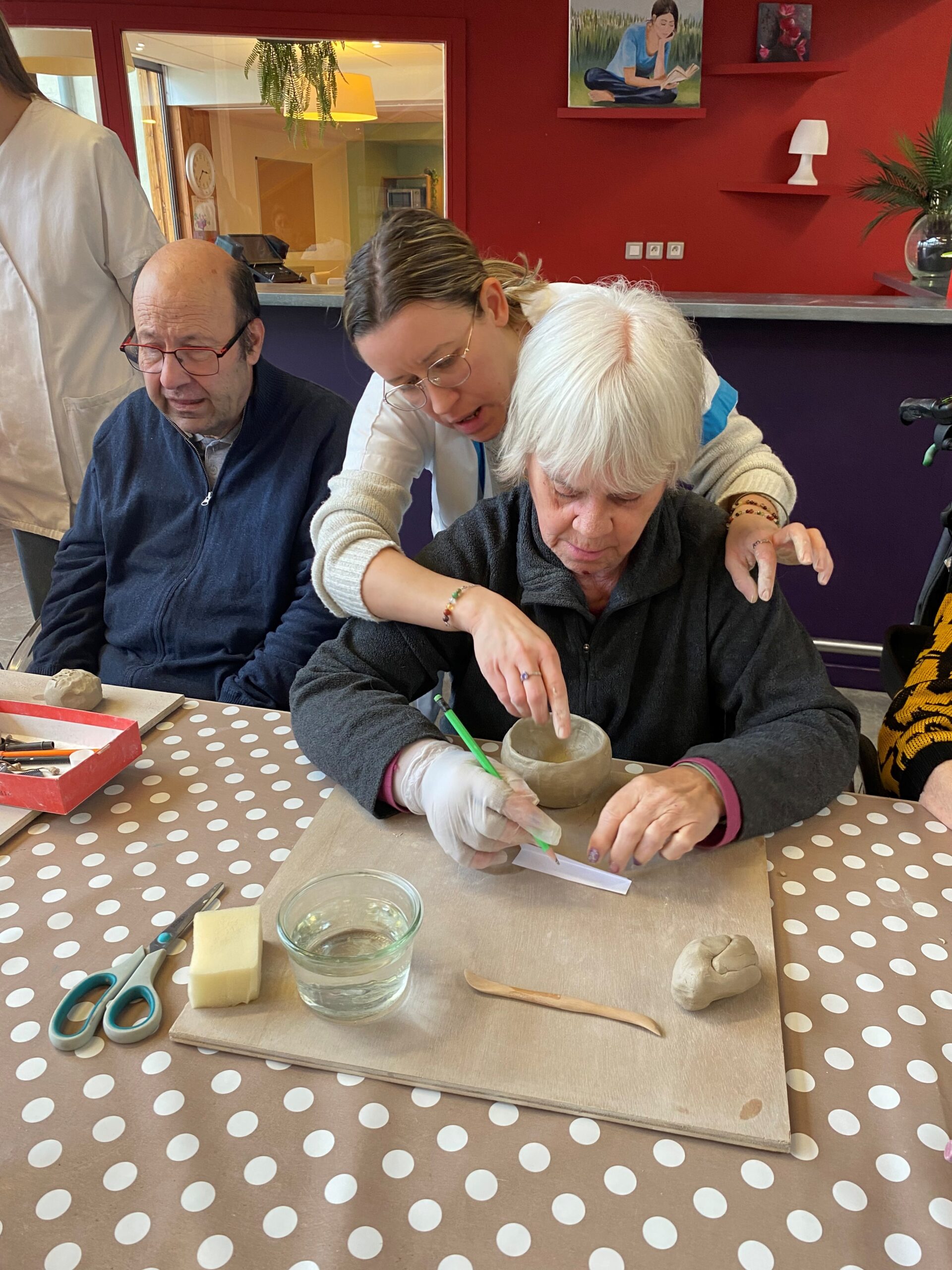 Béatrice, artiste passionnée de poterie, a apporté son expertise et sa bienveillance pour animer l’atelier. Sa présence rayonnante et sa passion pour l’art ont immédiatement captivé les résidents, créant une atmosphère propice à l’exploration et à la découverte.