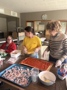 Pour nos apéritifs, nous aimons passer par l’atelier cuisine afin de tout préparer nous-mêmes. Pizzas, quiches et cakes… chacun met la main à la pâte dans une ambiance conviviale.