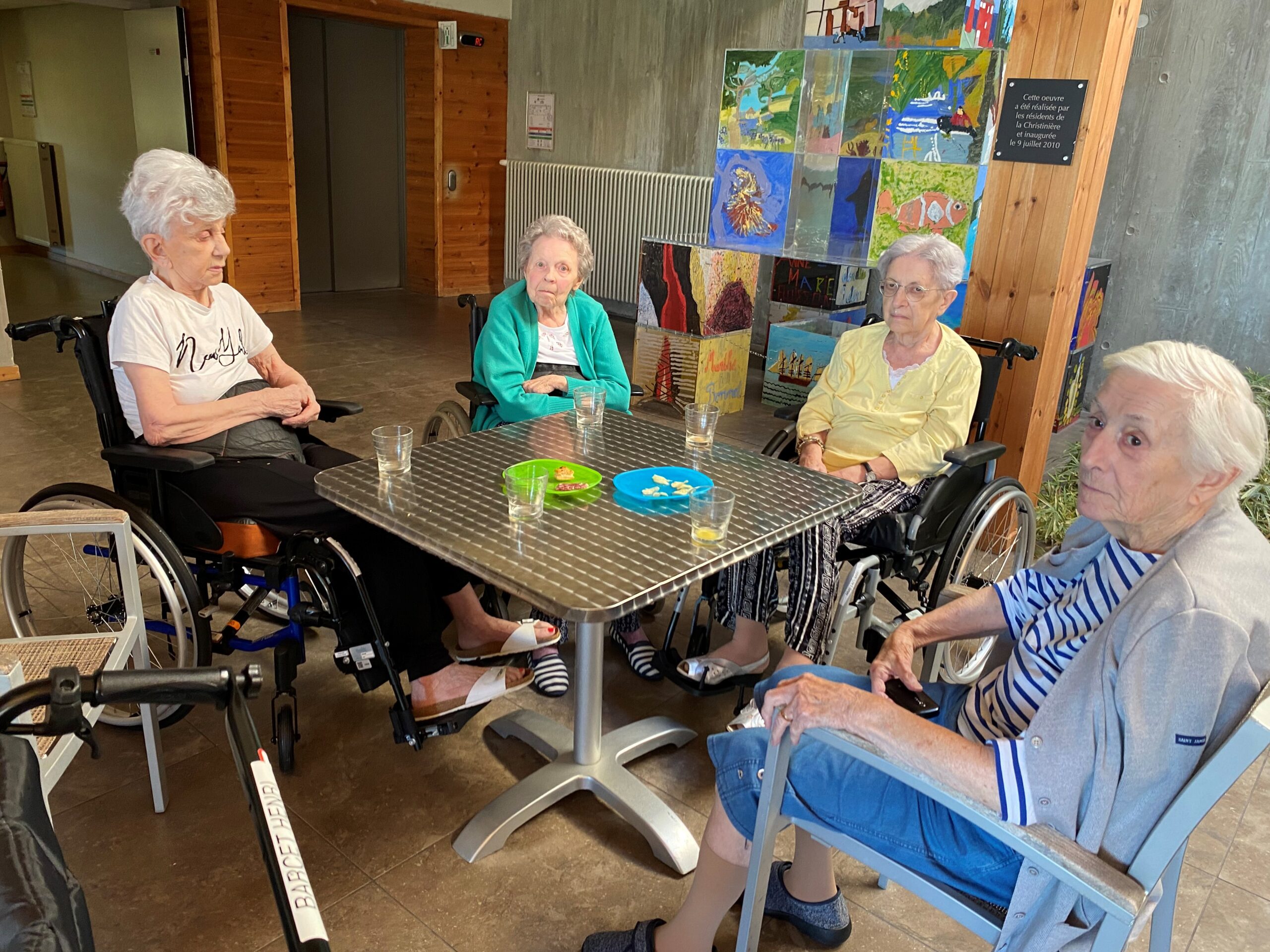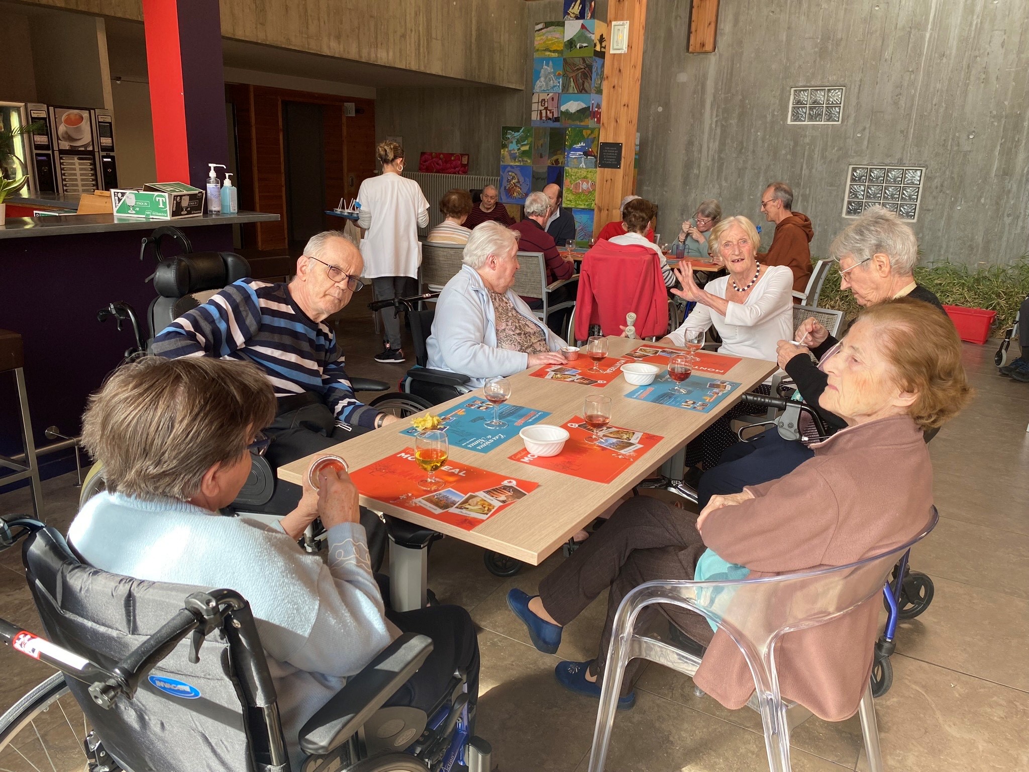 Dès que l’heure de l’apéro du vendredi sonne, une ambiance chaleureuse et festive envahit les lieux de la Christinière. Les résidents se retrouvent dans les espaces communs décorés avec soin, où des tables sont dressées avec des rafraîchissements et des amuse-bouche.