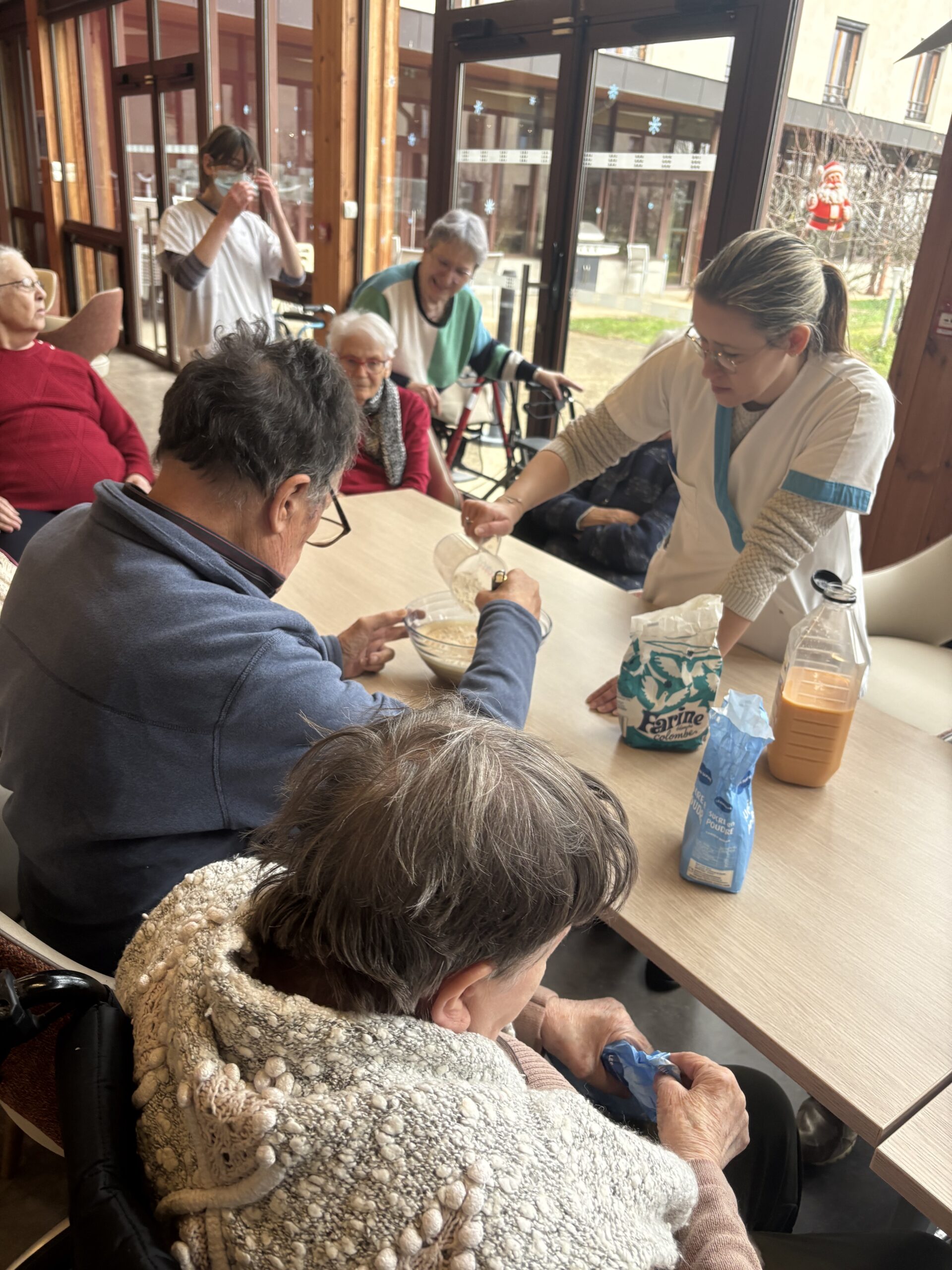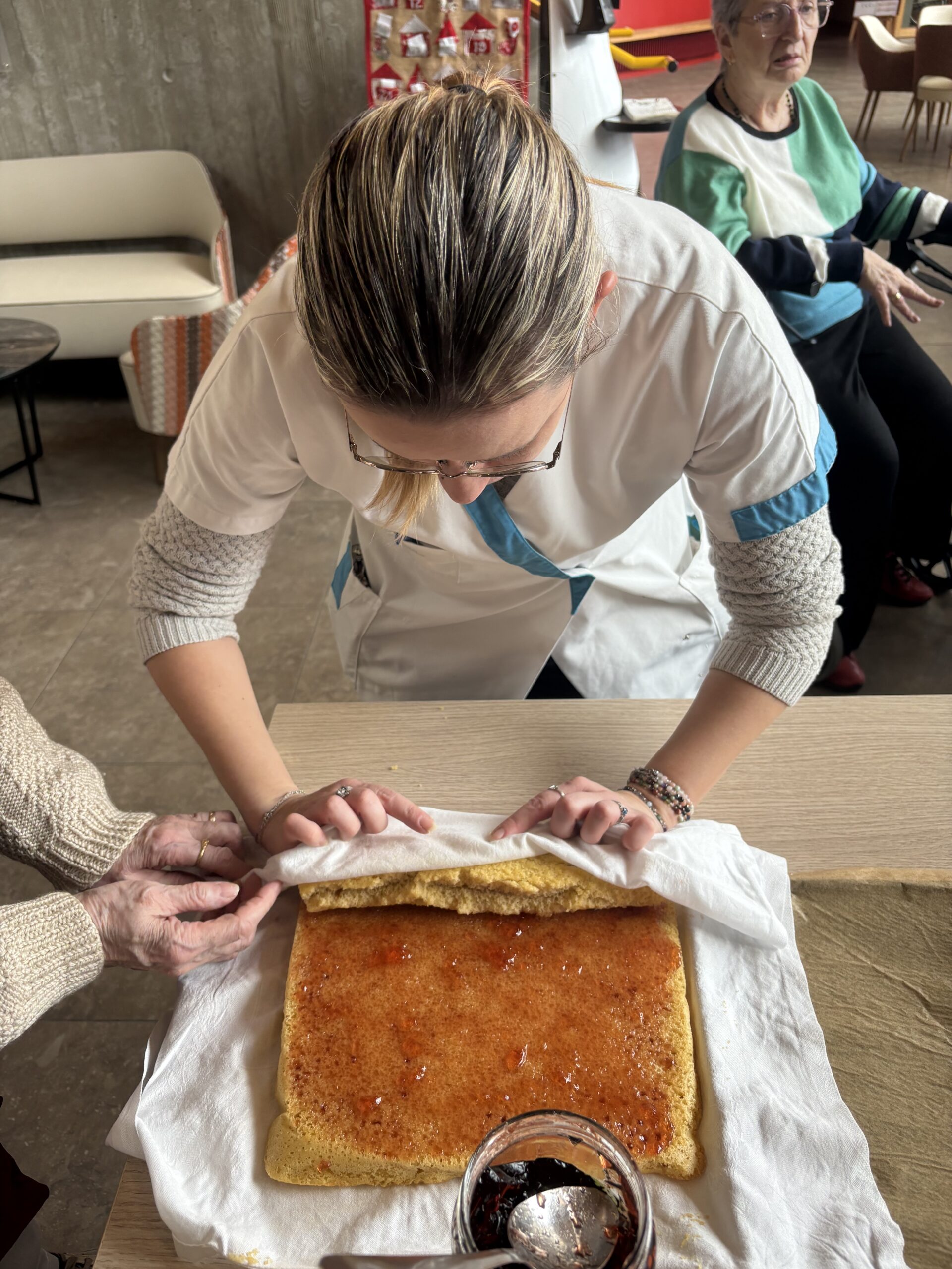 Cette année, nos résidents et les accueillis de l’accueil de jour ont eu le plaisir de participer à un atelier créatif inédit : la réalisation d’une bûche de Noël à la Christinière. Une première expérience pour tous, marquée par l’enthousiasme et la complicité entre les participants. Ensemble, ils ont su mêler tradition et créativité, et le résultat fut tout simplement magnifique. Il ne reste plus qu’à savourer cette bûche gourmande lors de notre dégustation prochaine pour conclure ce moment convivial.