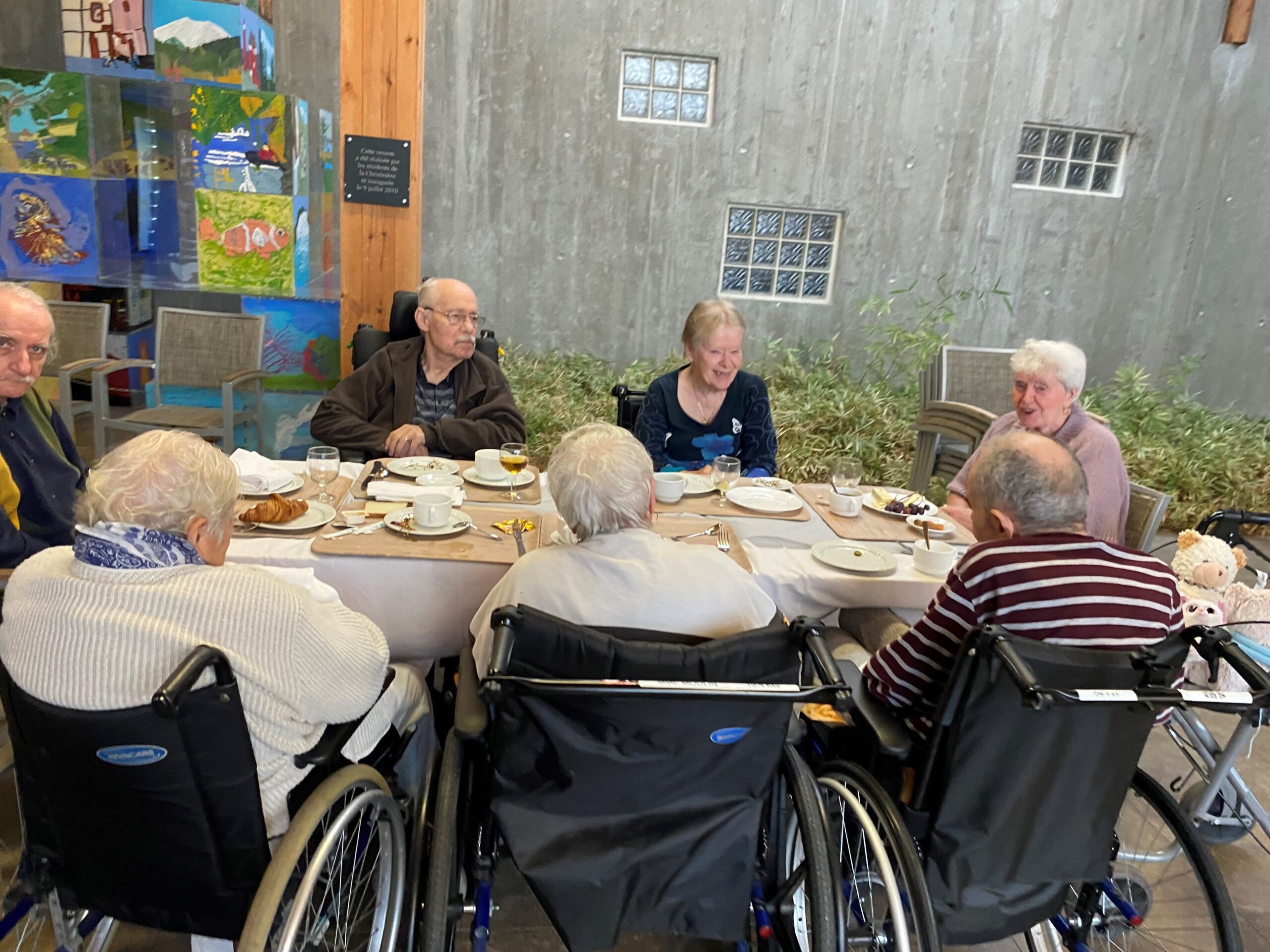 Les résidents, émerveillés par la richesse de cette table, se sont plongés dans une ambiance d’hôtel, évoquant leurs propres souvenirs de vacances et partageant des anecdotes autour des mets. Ce moment chaleureux a offert une véritable escapade matinale, renforçant la convivialité et l’esprit de communauté.
