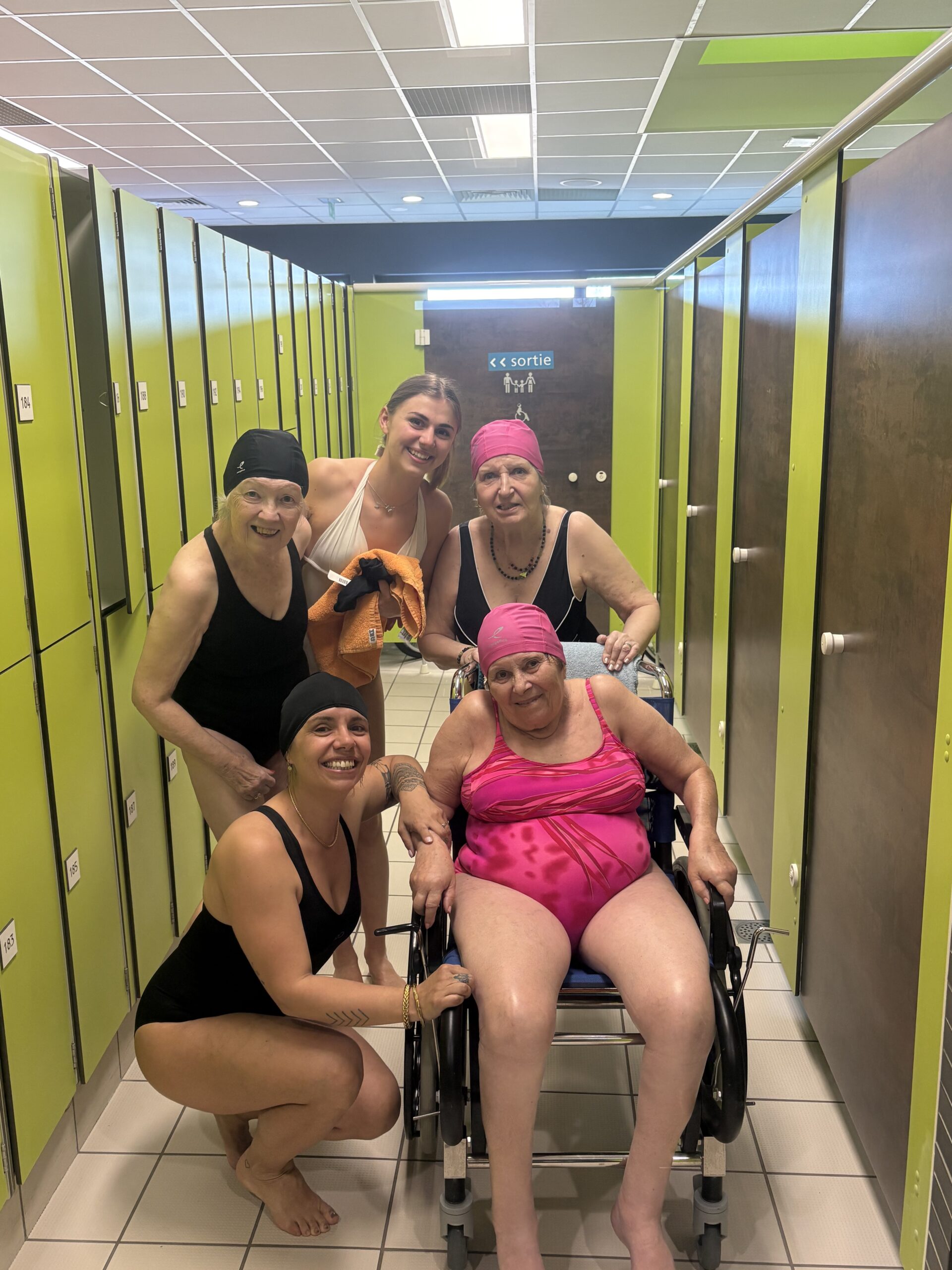La mise en action de notre projet piscine a commencé en beauté ! Avec notre psychomotricienne Solène, nous avons eu le plaisir d’emmener trois résidentes à la piscine.