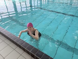 Instant d’émotion et de détente que nous n’oublierons jamais : quel bonheur de se pavaner comme de petits poissons dans l’eau ! Grâce à notre maître-nageur, nous avons pu nous exercer à faire des longueurs avec l’aide de frites et de bouées, en toute sécurité.
