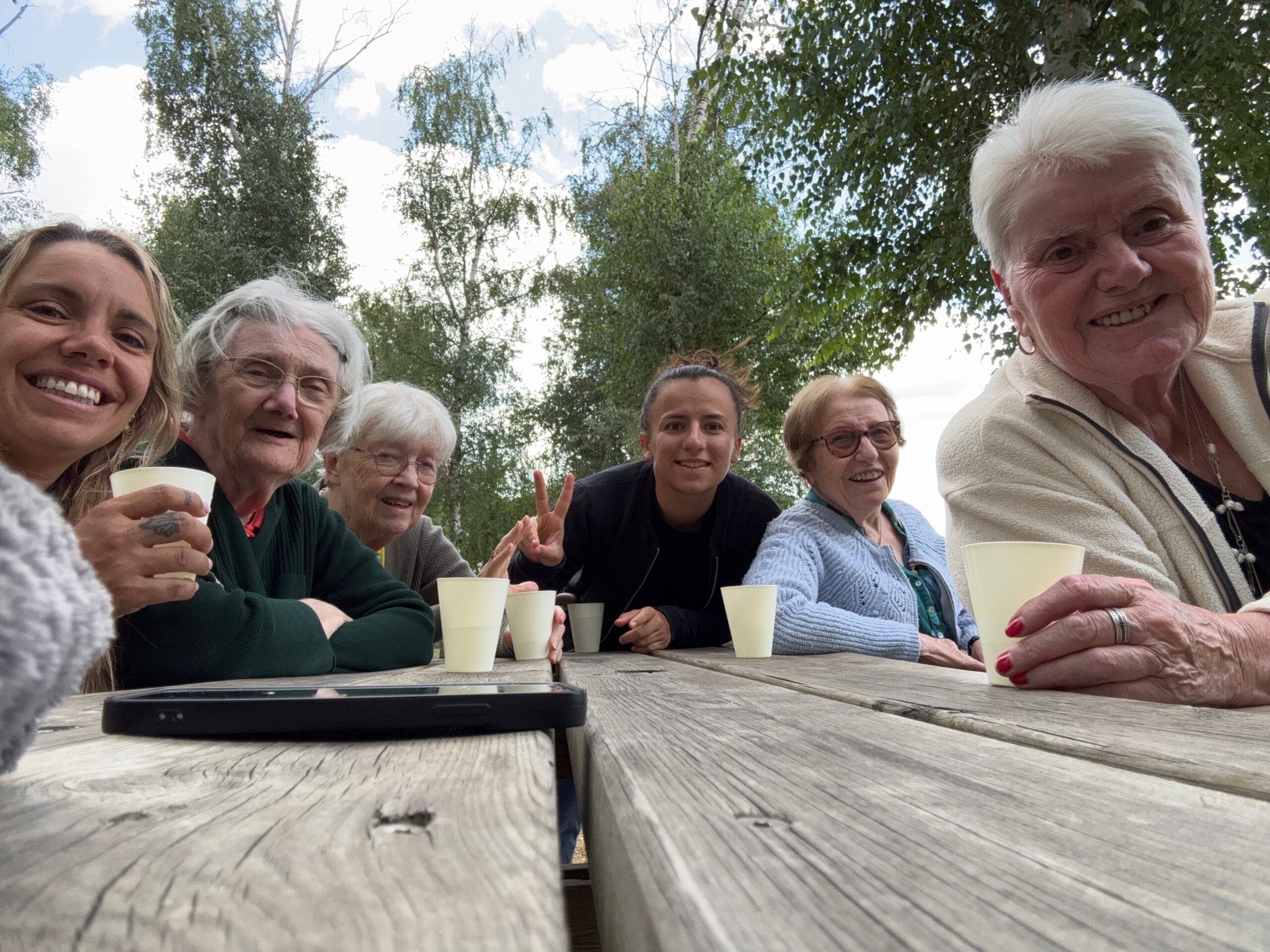 Goûter au bord de l’eau, éclats de rire, échanges complices et bonne humeur étaient au rendez-vous, le tout accompagné de Léa, notre soignante adorée.