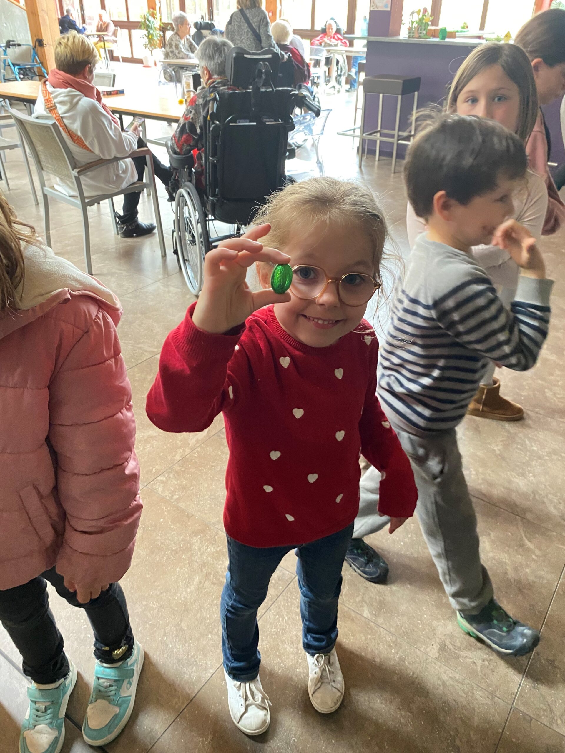 Dès le coup d’envoi de la chasse aux œufs, les enfants se sont lancés avec entrain à la recherche des précieux trésors chocolatés, sous le regard bienveillant des résidents qui les encourageaient et les félicitaient à chaque découverte.