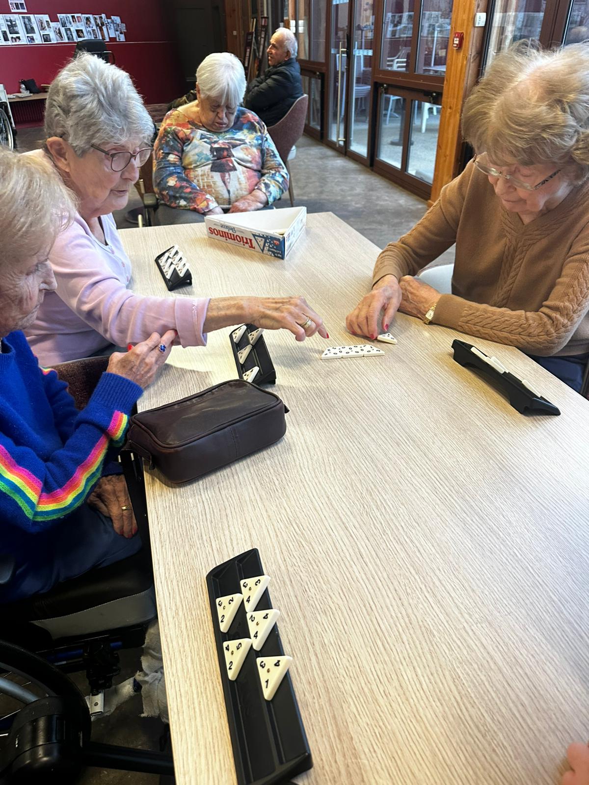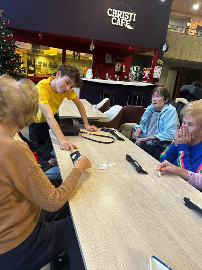 Nos résidents ont partagé un moment agréable autour du jeu de Triomino, accompagnés de Margaux et Killian, nos services civiques. Ce jeu a permis de stimuler la mémoire tout en favorisant des échanges conviviaux. Nos services civiques ont guidé les participants avec enthousiasme et bienveillance, créant une ambiance chaleureuse. Les sourires étaient nombreux et l’atmosphère joyeuse. Une belle activité intergénérationnelle qui a renforcé les liens au sein de la Christinière.