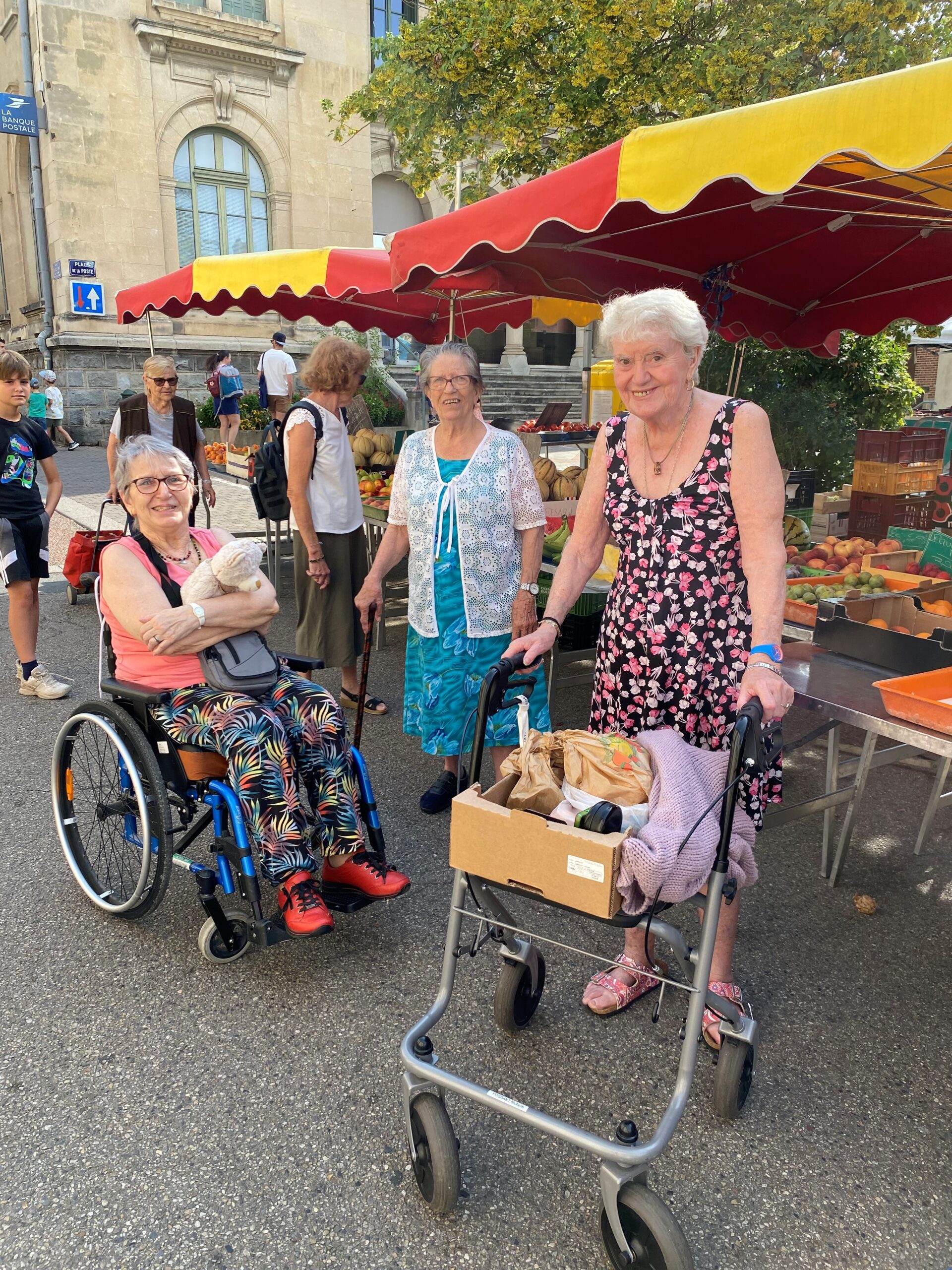 Après avoir déambulé parmi les étals, nous avons pris une pause bien méritée à la terrasse d’un café local, en plein cœur de la place du marché. Les résidents ont profité d’un moment de détente tout en observant l’animation du marché. Ce temps de repos a permis à chacun de partager ses impressions et de profiter de la douceur du matin.