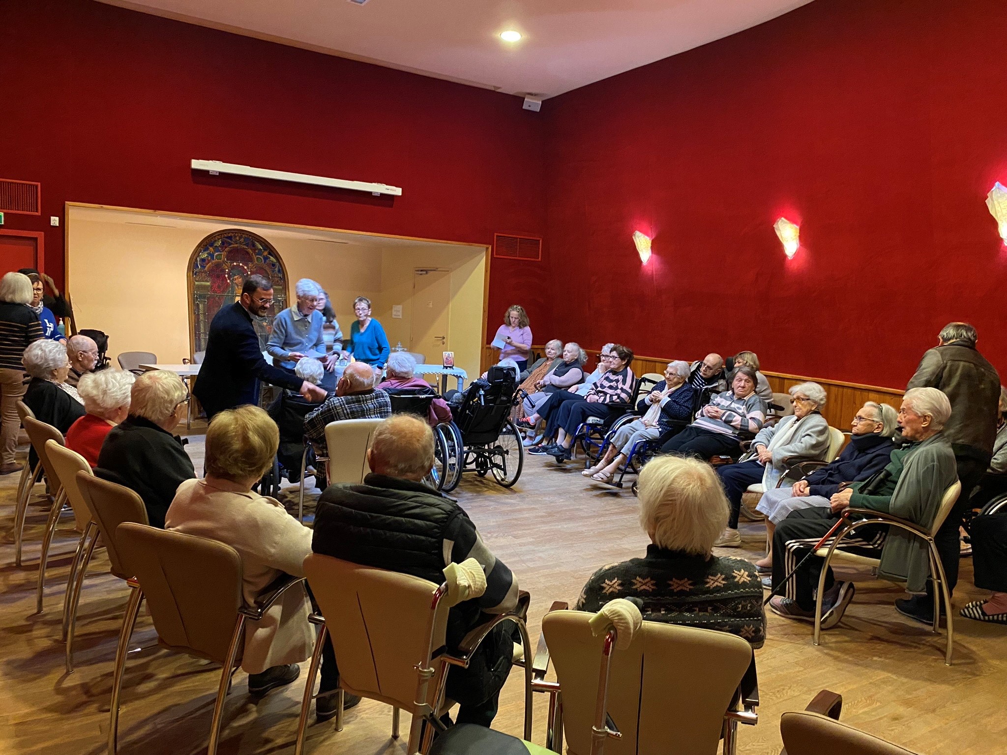 Après la messe, les participants ont eu l’occasion d’échanger et de partager un moment de convivialité. Autour d’un goûter, ils ont partagé des anecdotes, des souvenirs et des réflexions, renforçant ainsi les liens sociaux et la solidarité au sein de la communauté de l’EHPAD.